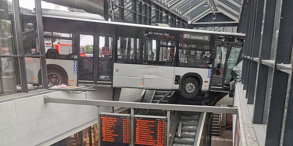 5. Автобус врезался в здание железнодорожного вокзала в Гамбурге, Германия