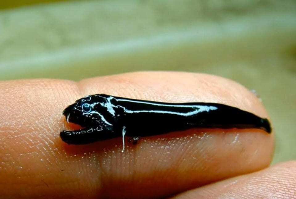 Бесчешуйная чёрная рыба. Такая маленькая, а такая клыкастая