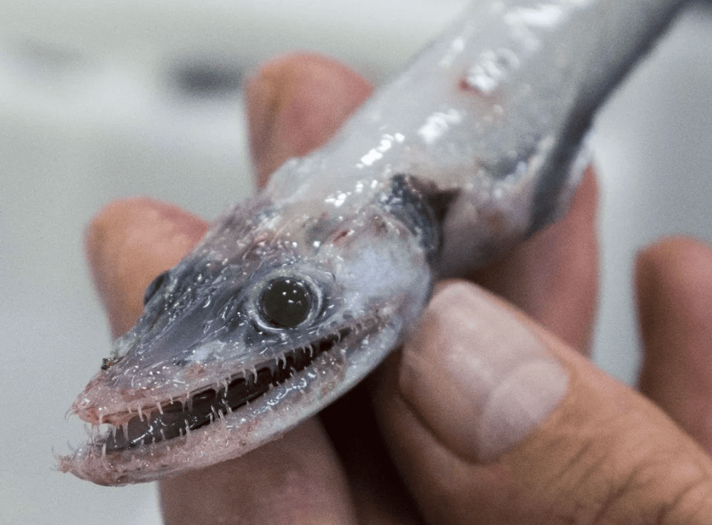 Рыба-ящерица — обладатель красивых зелёных глаз и очень острых, опасных зубов