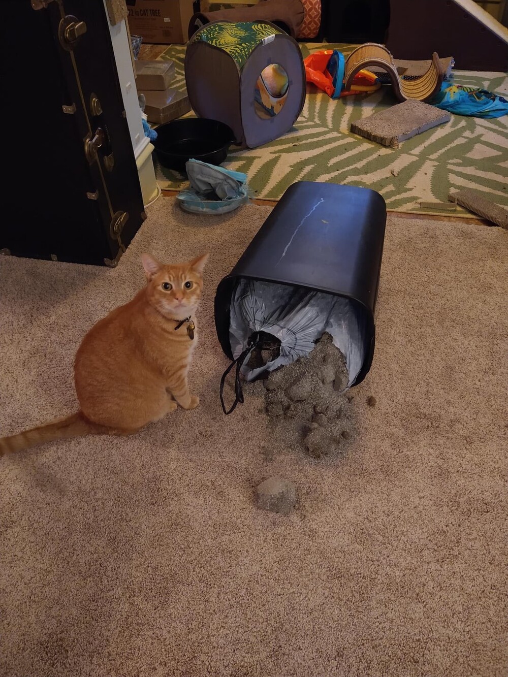 13. Он так бегал, что порвал пакет с мусором