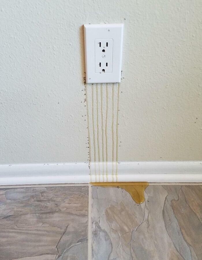 1. В стене так много пчел, что из розетки течёт мед