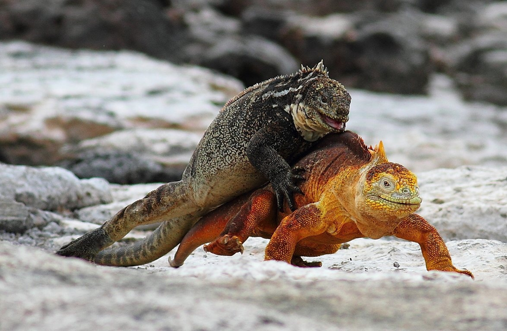Часто случается, что такой локацией оказывается пляж, куда выбирается и морская братия игуан. Даже миллионы лет разницы эволюции не могут остановить рептилий от любви друг к другу, пусть и с оговорками.