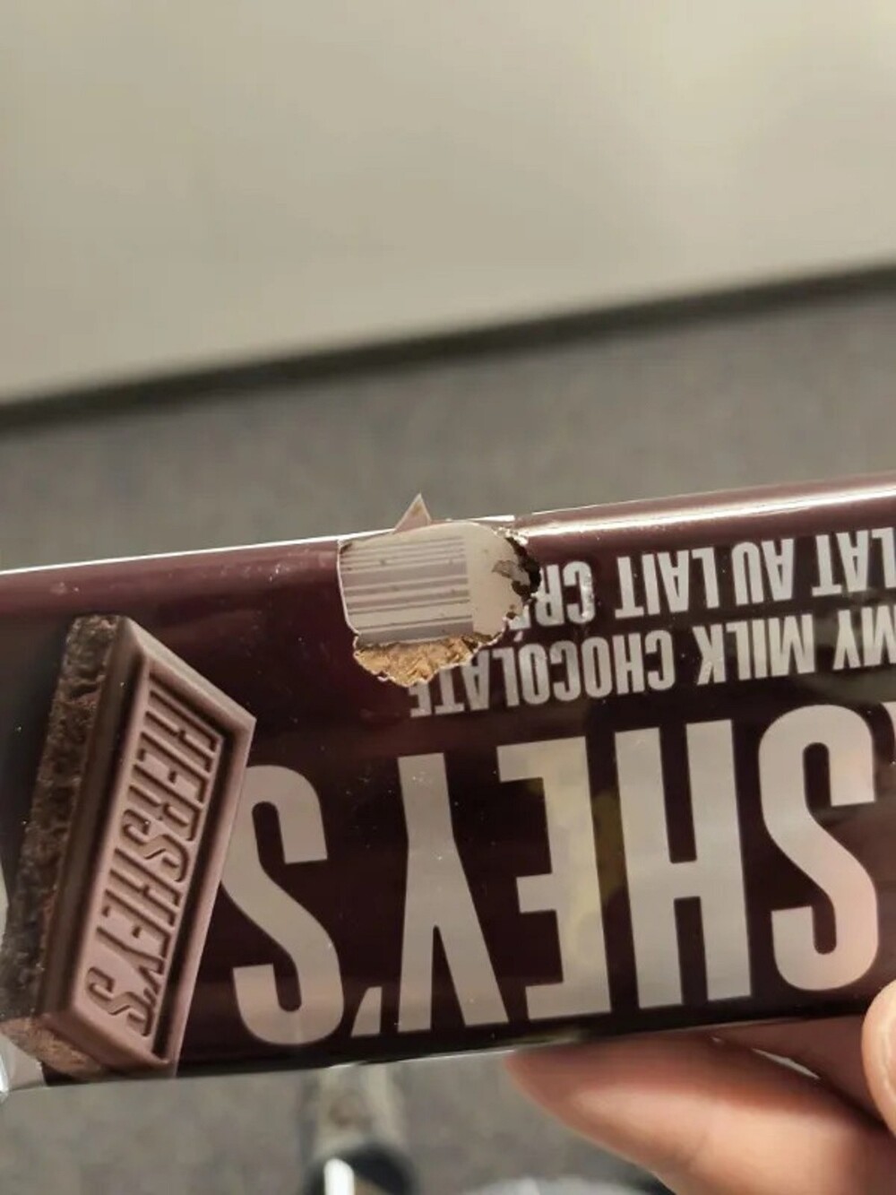 1. "Только что достал из автомата шоколадку, а кто-то уже успел её надкусить"