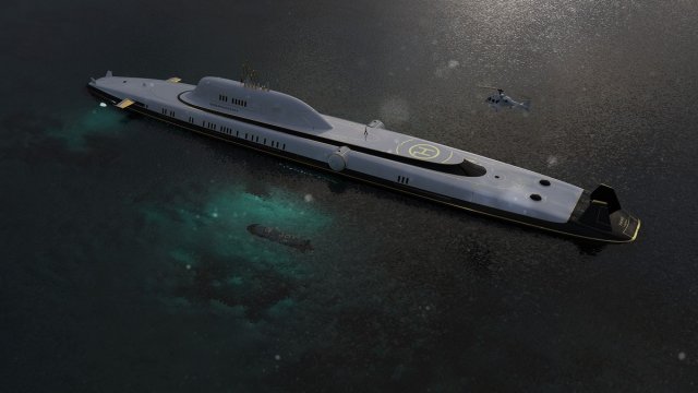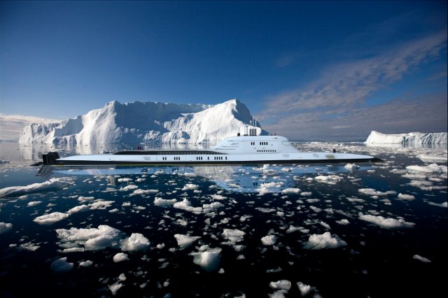 Если у вас есть 2 миллиарда долларов, то вам с удовольствием сконструируют 282-метровой судно, на борту которого есть вертолетная площадка, а также бассейн, кинотеатр, винный погреб, библиотека и многое, многое другое. Интересно, что ведущая подводная лодка Королевского флота Великобритании, HMS Astute пока что всего "98 метров". Новая яхта сможет погружаться на глубину 457 метров и оставаться там на несколько недель.
