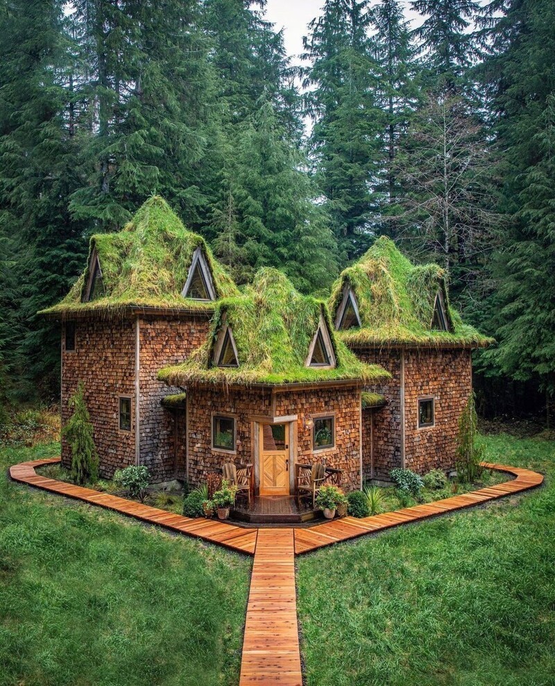 На создание следующего домика молодого учителя вдохновил полуразрушенный, но очень перспективный склад. Это строение получилось уже более основательным и уютным, а фэнтези-составляющую архитектор-самоучка придал, посадив на крыше домика мох.