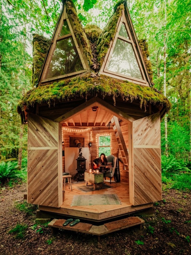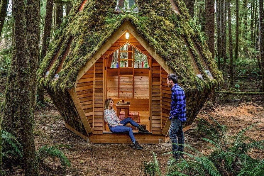 Сказочную пирамидальную избушку он строил уже с помощью своей девушки Сары Андервуд, которая полностью разделила увлечение парня. Домик вышел крошечным, но зато двухэтажным и аутентичным. Его можно арендовать любому желающему, поэтому к услугам гостей базовый набор удобств, включающий электричество, водопровод, кладовку, биотуалет и даже гидромассажную ванну. Большинство домиков Джейкоба находятся в Вашингтоне, а два – в штатах Мэн и Нью-Йорк.