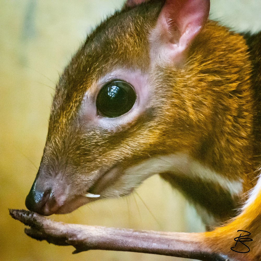 Самцы оленьков буквально саблезубые. Вероятно, рога у копытных не появились из-за того, что живут они в густых зарослях. Вешалка на голове попросту мешала бы нормально передвигаться среди кустов, а защищаться чем-то нужно. Вот парни и отрастили «бивни», чтобы отбиваться от хищников и отбивать свою самку от конкурентов.
