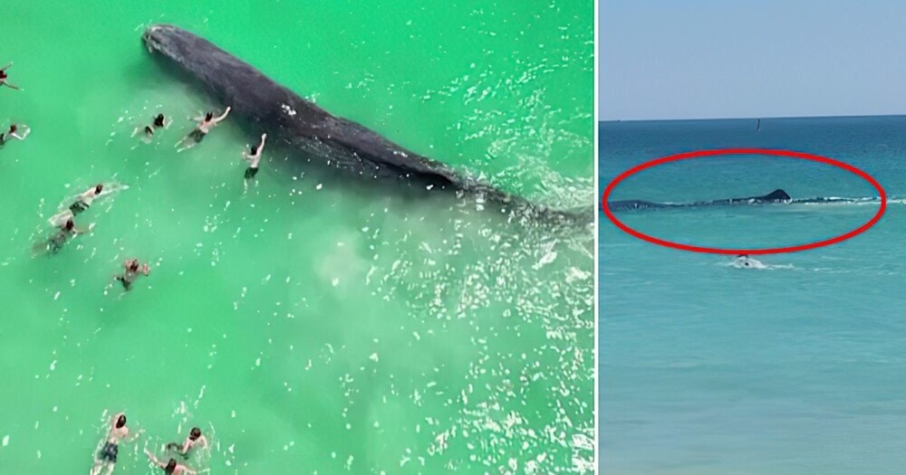Удивительный момент: посетители пляжа Лейтон в австралийском Перте увидели прямо у берега кашалота. Самые любопытные подплыли к нему, несмотря на то, что это могло быть небезопасно.