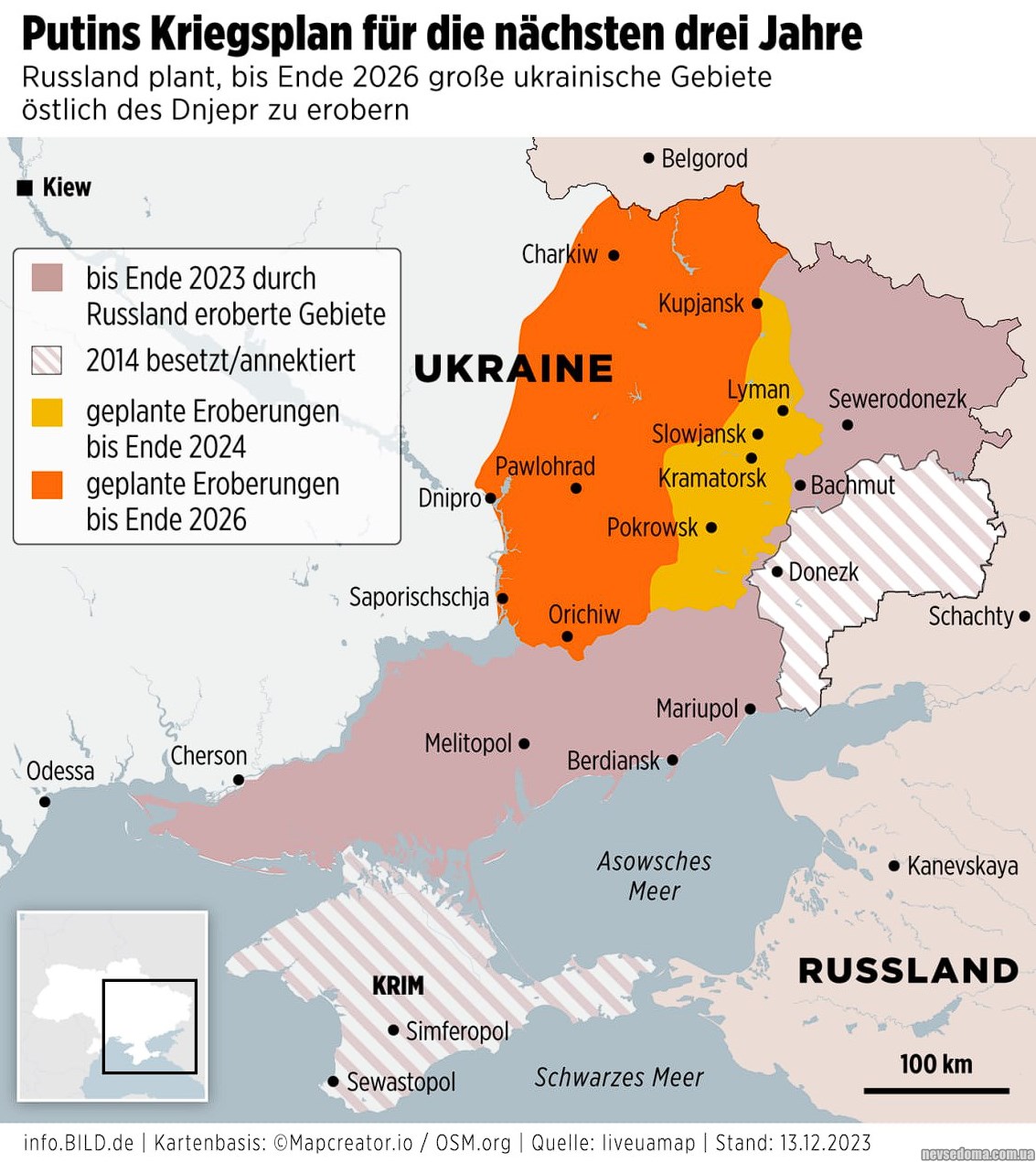 Все восточные территории левее Днепра должны быть завоеваны в течение 36 месяцев. Российские власти готовы терять на Украине до 100 тысяч солдат ежегодно.