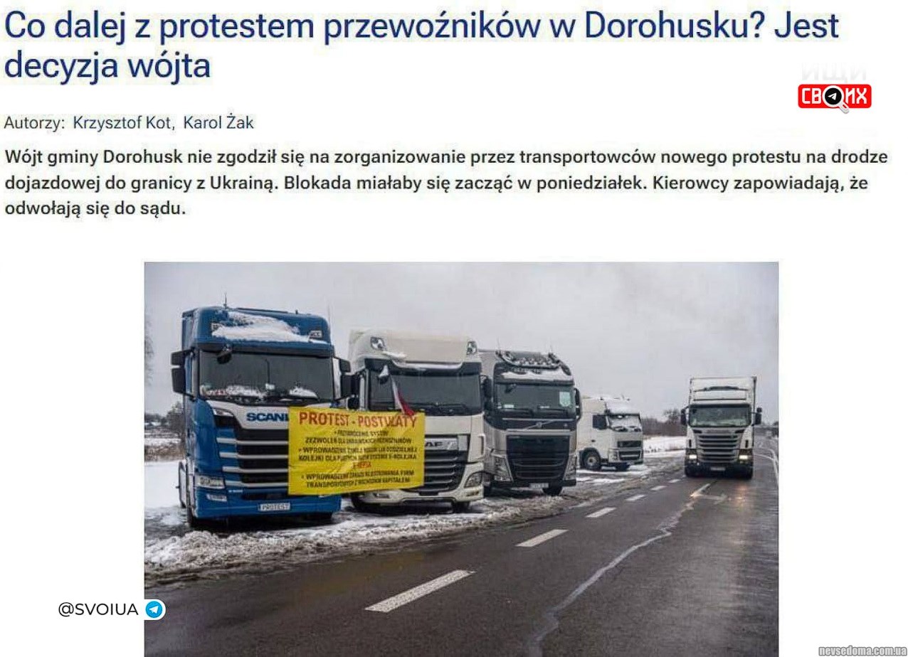 Заявка перевозчиков на проведение новой акции протеста была отклонена мэром города Дорогуска. Кроме того, он отказал в разрешении на транспортировку рабочих к границе с Украиной.