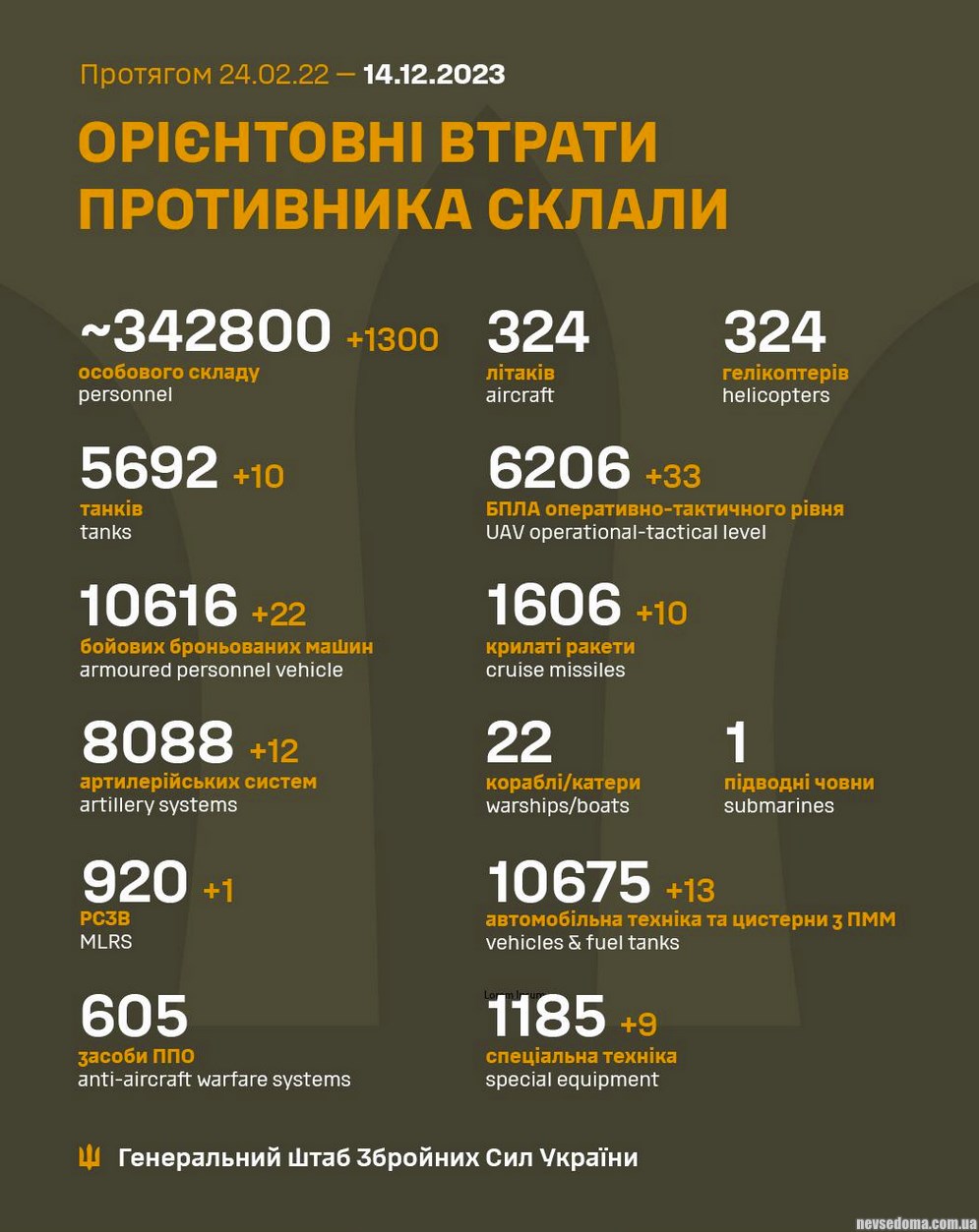 В ночь на 14 декабря 2023 года рф атаковала Украину с помощью БПЛА и зенитных управляемых ракет системы С-300. Шесть ракет были запущены около полуночи из временно оккупированных территорий Херсонщины в направлении Николаевской и Херсонской областей.