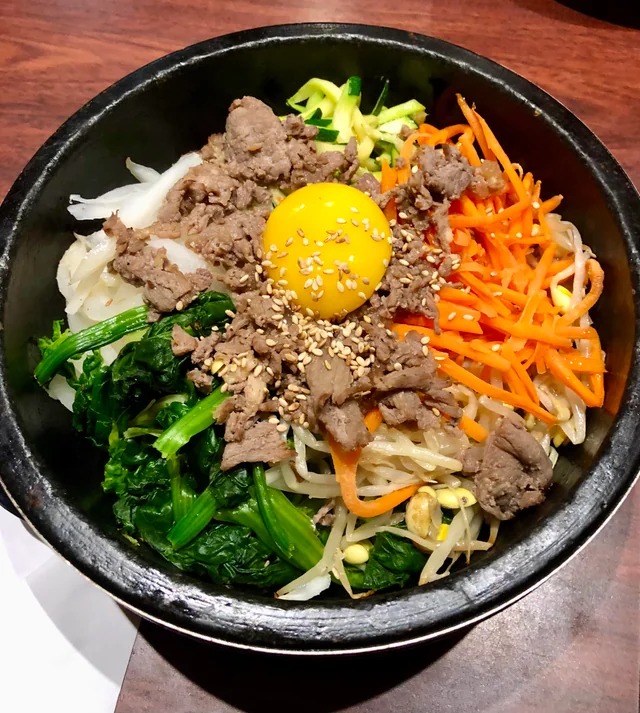 Пибимпап — очень популярное традиционное блюдо в корейской кухне. Это сложносоставное блюдо. В него входят рис, который покрываются салатом намуль, сырое или жареное яйцо, кусочки мяса и паста из острого перца. Все ингредиенты перемешиваются непосредственно перед принятием пищи.