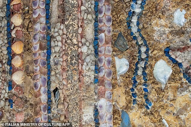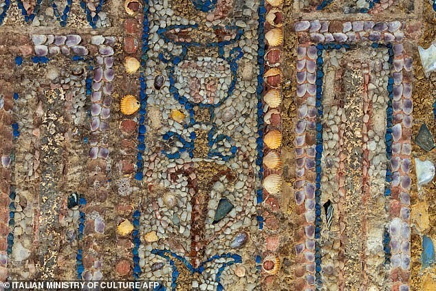 По словам представителей министерства, мозаика выполнена с помощью различных видов раковин, египетских голубых тессеров, драгоценного стекла, мельчайших чешуек белого мрамора и других видов камня.