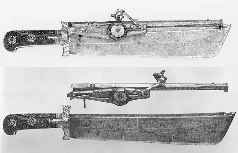 2. Немецкий охотничий тесак с пистолетом и календарём (1528 год)
