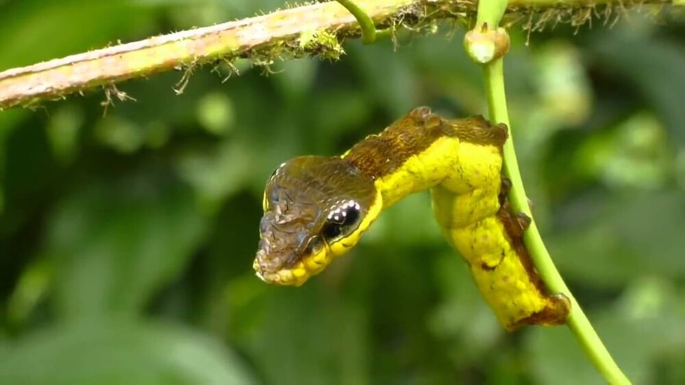 5. Это гусеница с головой змеи. У неё такой вид, чтобы отпугивать хищников