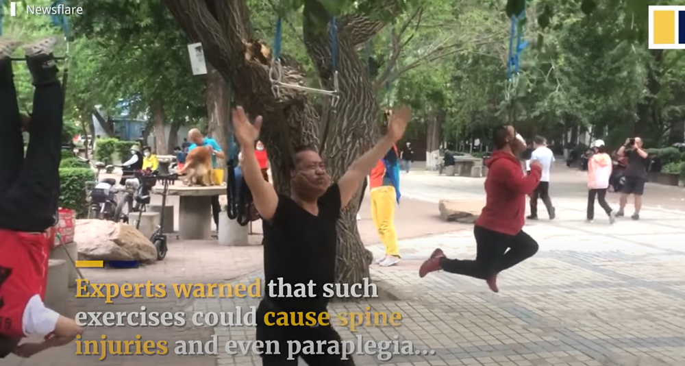 Некоторые врачи даже говорят, что это смертельное упражнение, но китайского пенсионера не способно остановить ничто. Что ему до врачебного авторитета!