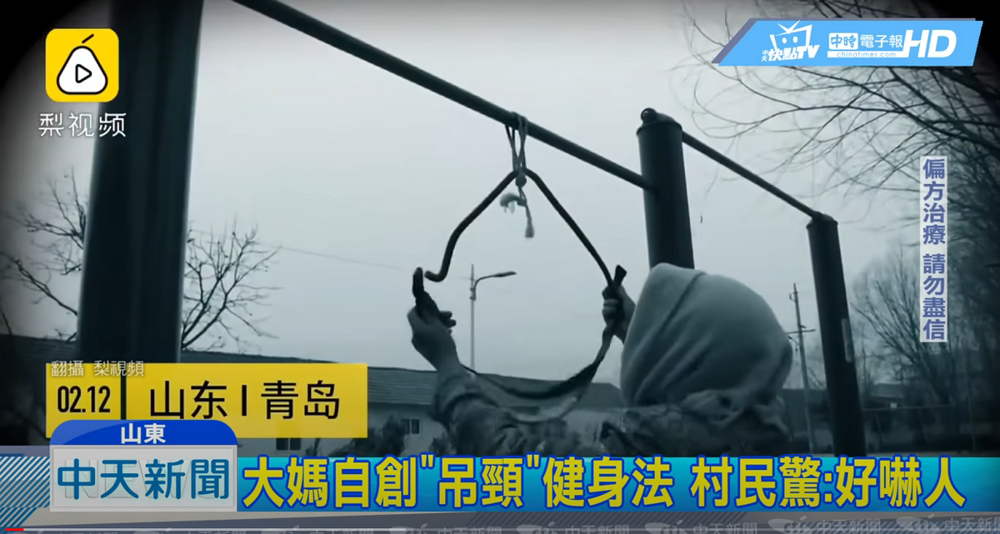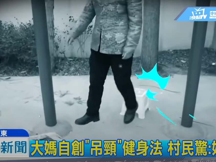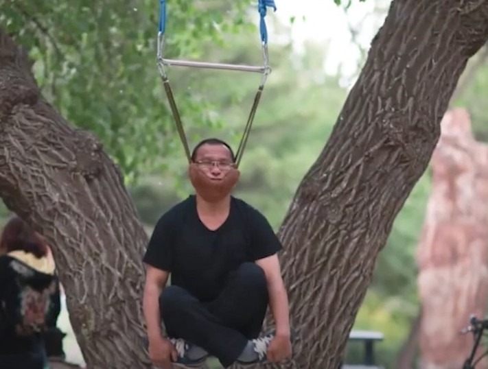 Эта волна началась в провинции Ляонин, где пенсионеры придумали новый вид фитнеса – покупать специальную подвеску под подбородок, крепить ее на деревья или перекладины спортплощадок и болтаться в воздухе на собственной шеи.