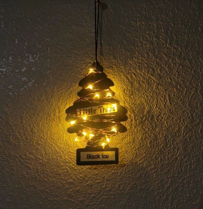 1. Освежитель воздуха, украшенный крошечной светящейся гирляндой. С запахом настоящей ёлки!