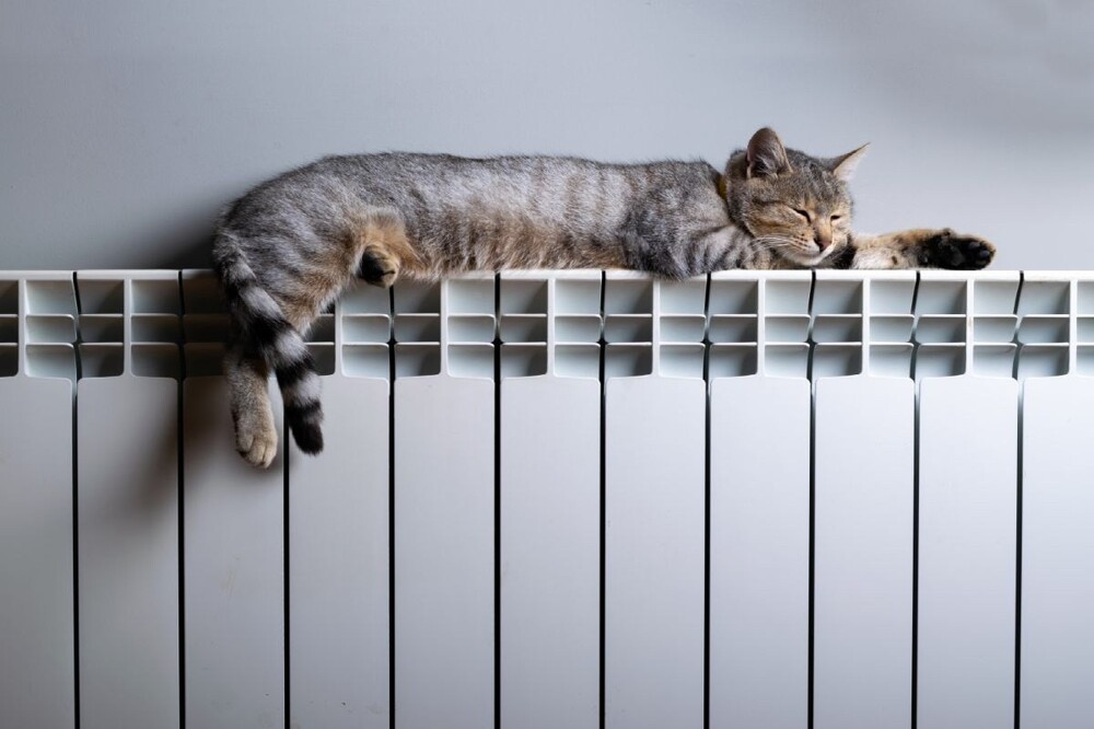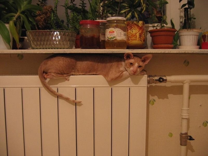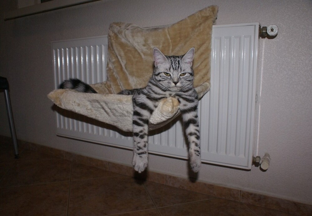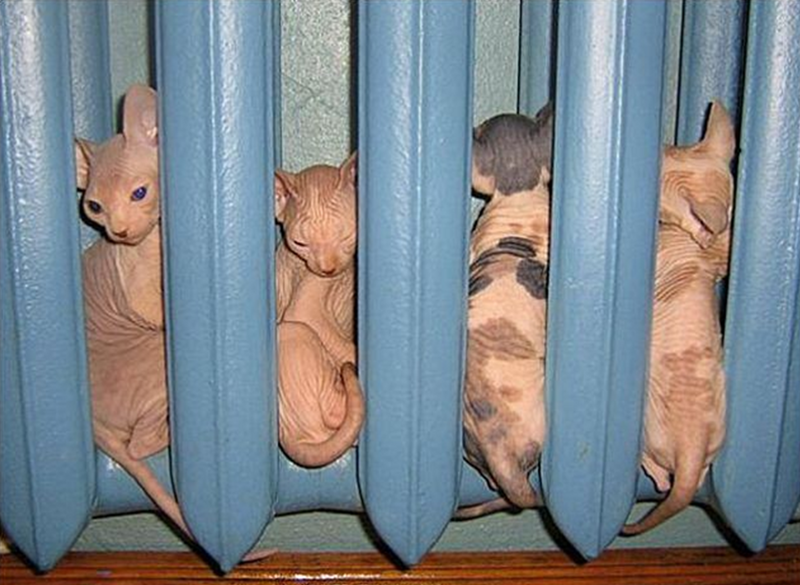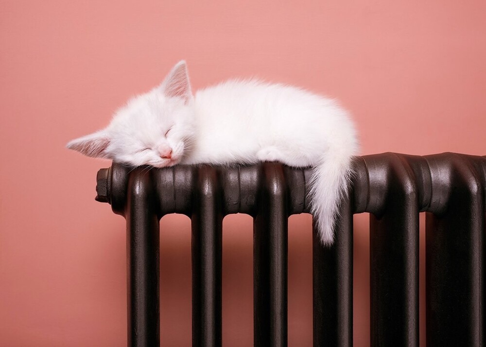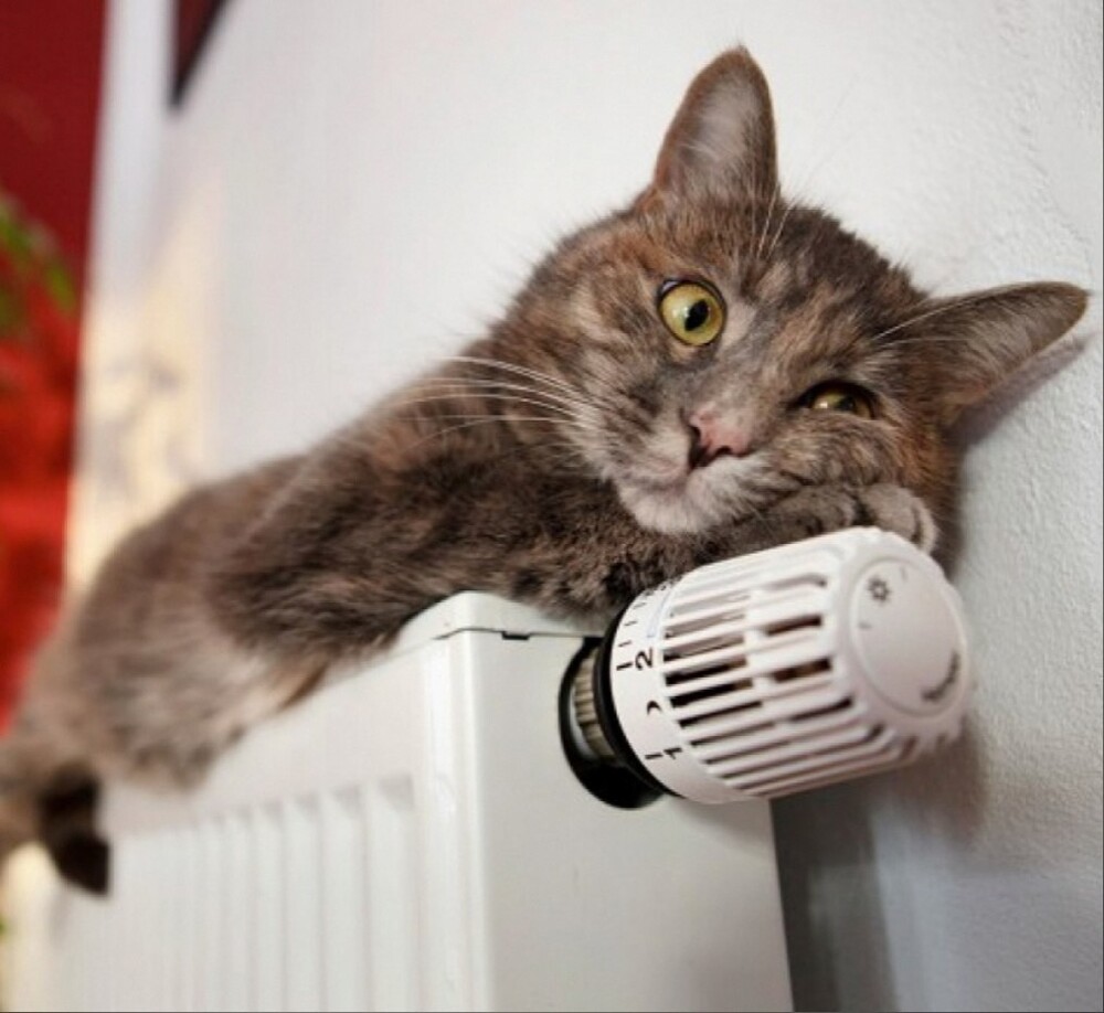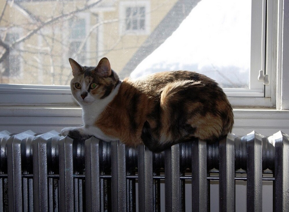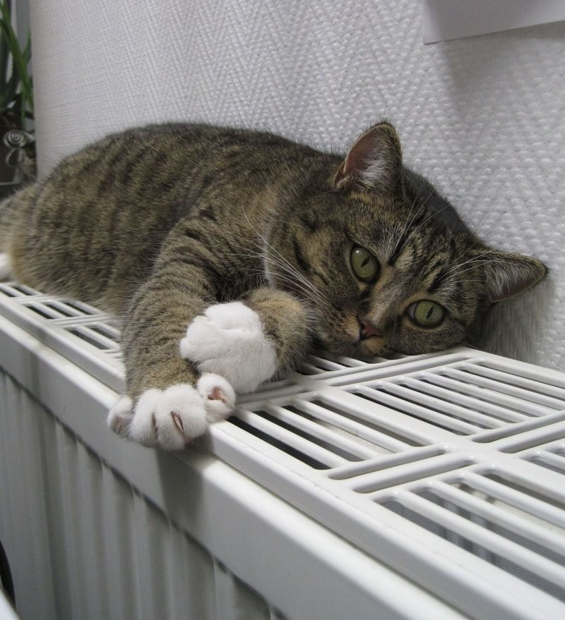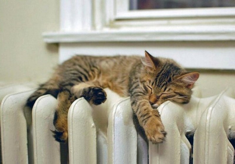 И идеальным местом ожидания весны для многих котиков становится радиатор отопления. Хотя в некоторых местностях они слишком горячие, и клубковаться приходится рядом. Зато в других температура импровизированной лежанки вполне комфортная, и котеек всё устраивает.