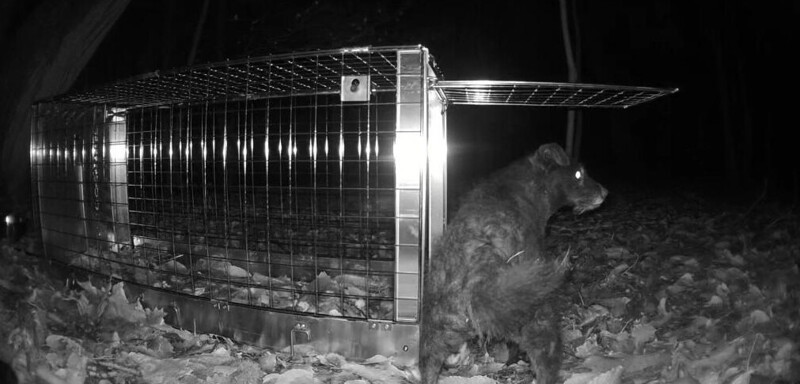Волонтёры решили устроить судьбу собаки и заманили её в ловушку с мясом, чтобы осмотреть, отвезти к ветеринару и пристроить в добрые руки.