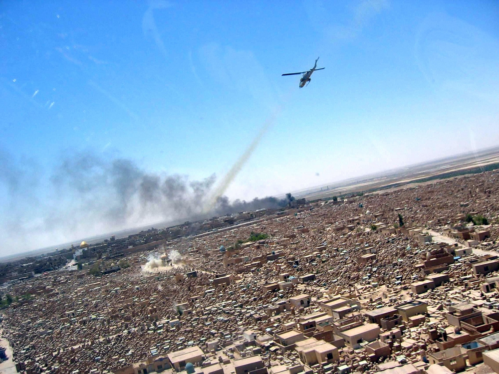 Американский вертолет атакует миномётную позицию противника, 2004 год