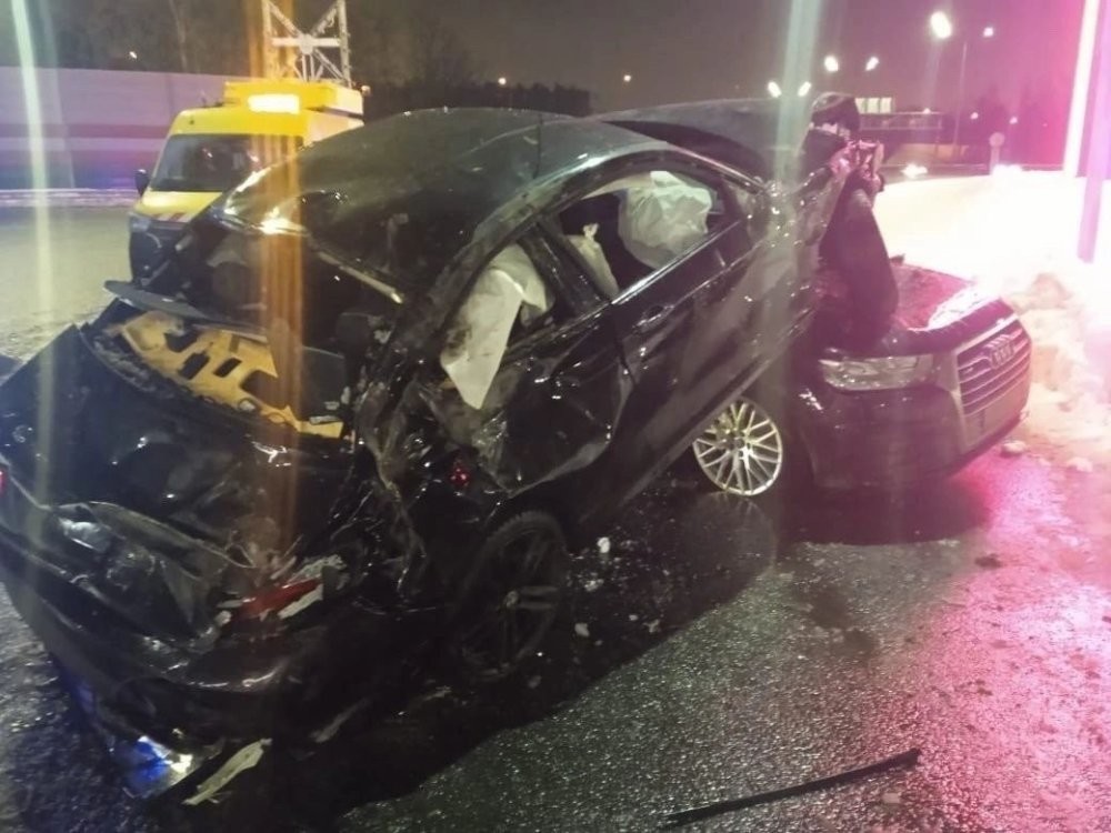 На 23 километре платной трассы М-11 столкнулись четыре автомобиля. Один водитель решил свернуть на заправку и подрезал другого. От удара легковушка вылетела с дороги, перевернулась и врезалась в две припаркованные машины. В результате происшествия пострадали два человека.