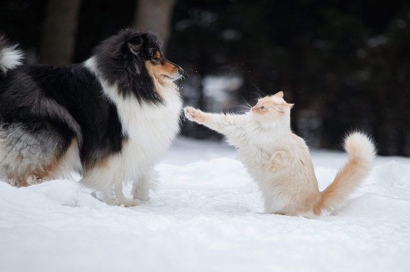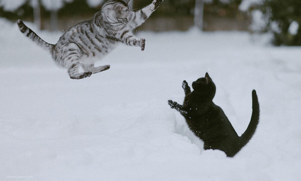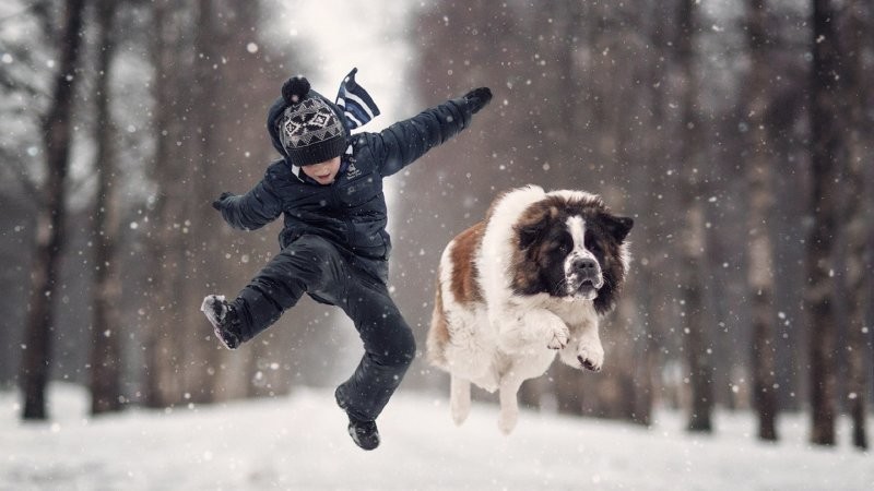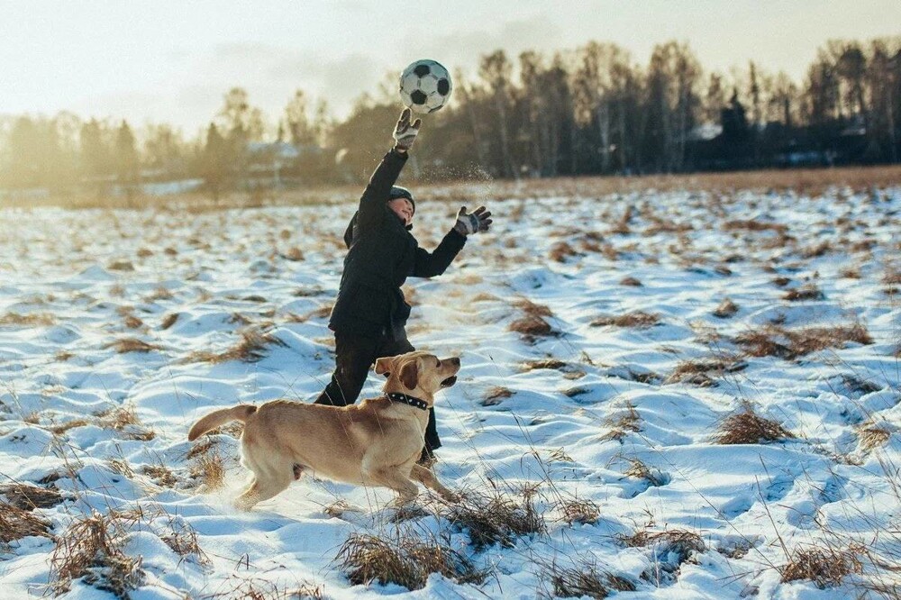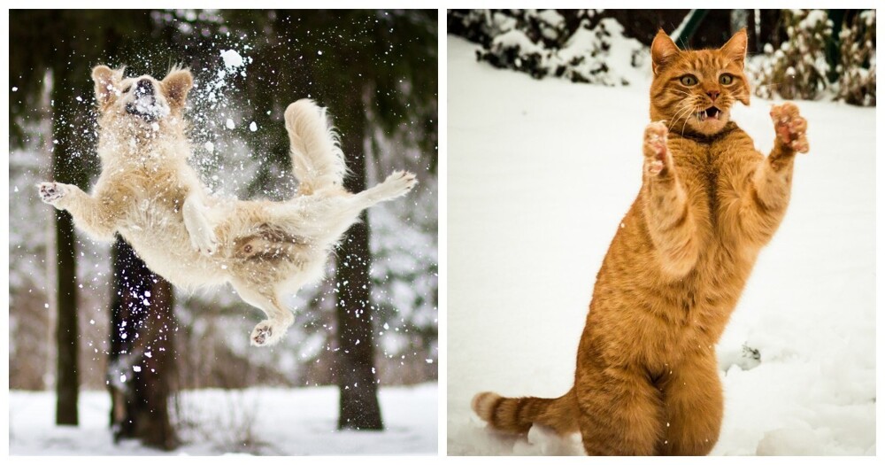 Снежки, прятки и не только: зимние забавы братьев наших меньших (21 фото)