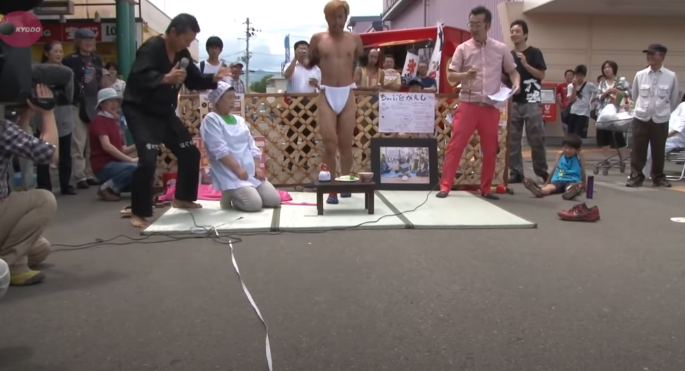 Потому и ведущая тут всегда в наряде для чайной церемонии. Обожаю самый смешной момент того, как ведущая дает знак действовать.