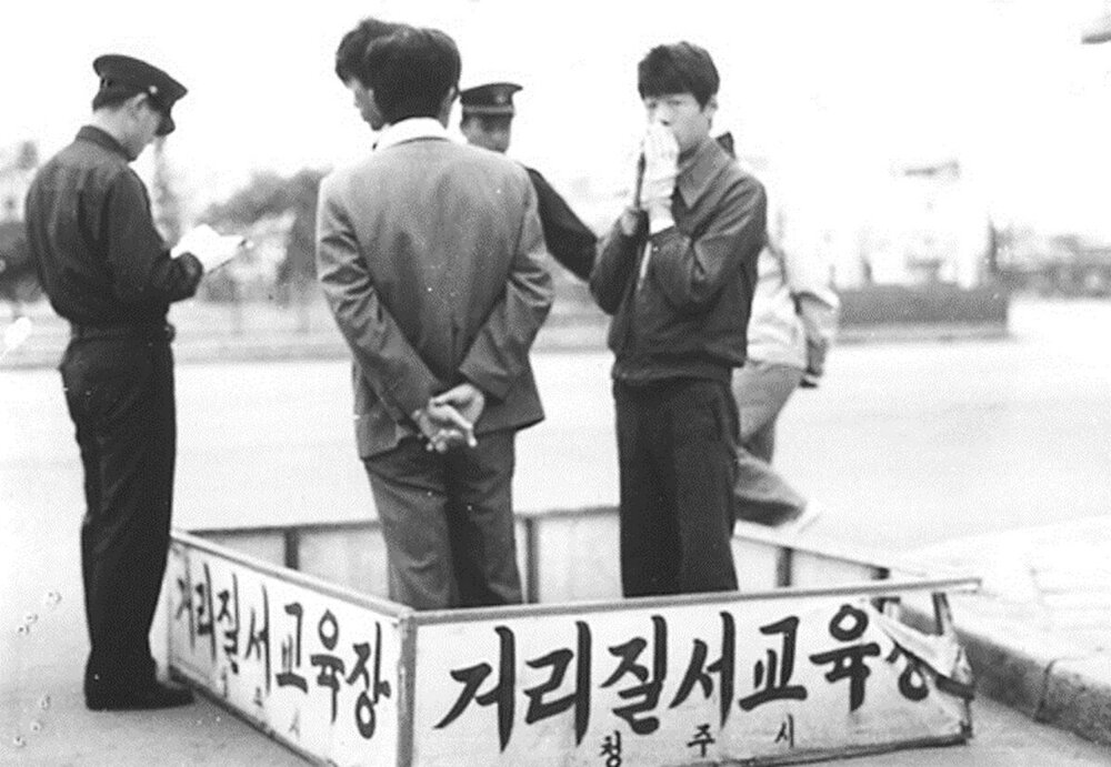 Это я к чему всё говорю? Недавно наткнулся на фотографию, сделанную в 1976 году в провинции Кёнгидо в Южной Корее. Несколько мужчин и женщин с понурыми головами стояли в тесной импровизированной «клетке» из невысоких ограждений. Рядом была полиция, несколько велосипедов и мопед. Я стал выяснять, что происходит, разыскал ещё немало снимков и понял, что не хотел бы жить в Южной Корее в 70-х годах XX века.