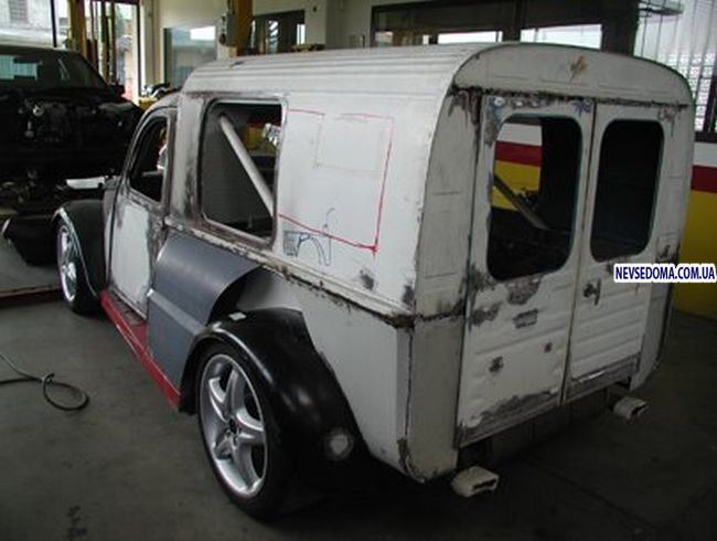 Что получится, если кучка итальянцев из фирмы Nimik возьмут классический французский Citroen 2CV и добавят в него ходовую часть и двигатель от Ferrari F355 c 375 л.с.? Получится нечто! На создание этого гибрида ушло 1500 часлв и, внимание, около 180 000 евро! Проект был безумно сложным, так как у обоих автомобилей практически нет ничего общего. Смотрите сами, что получилось. Мне нравится. Но 180 тысяч евро? Как-то слишком.