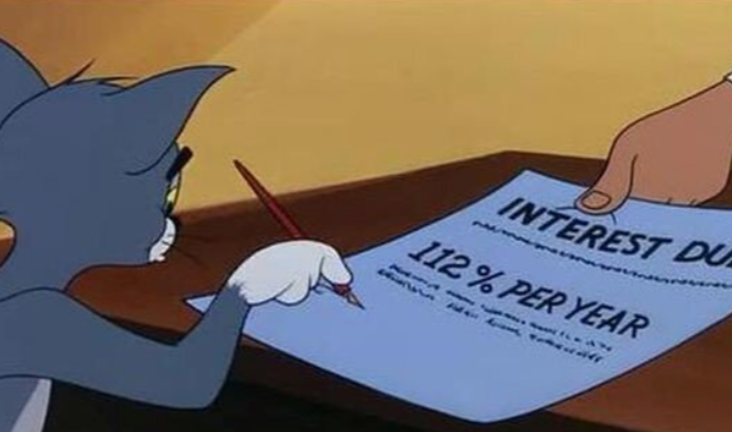 Если взглянуть на условия, то мы прекрасно видим, что Том берет кредит под 112% годовых, на 312 месяцев, что составляет 26 лет. Более того, в залог он передает банку свою руку и ногу, а также попадает в рабство на 20 лет.