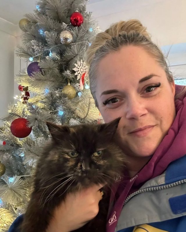 Героиню зовут Клубничка - и она пропала в 2014 году. Ее нашла волонтер на улице, у кошки также имелся микрочип, но даже это не помогло связаться с владельцами пушистой. Поэтому Клубничка переехала в новый дом. Поиски продолжались девять лет и вот под Новый год случилось чудо. Впрочем, Клубничка похоже не особенно рада этому.