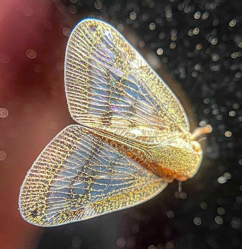 Удивительной красоты насекомое, у которого крылья словно расшиты золотыми нитями