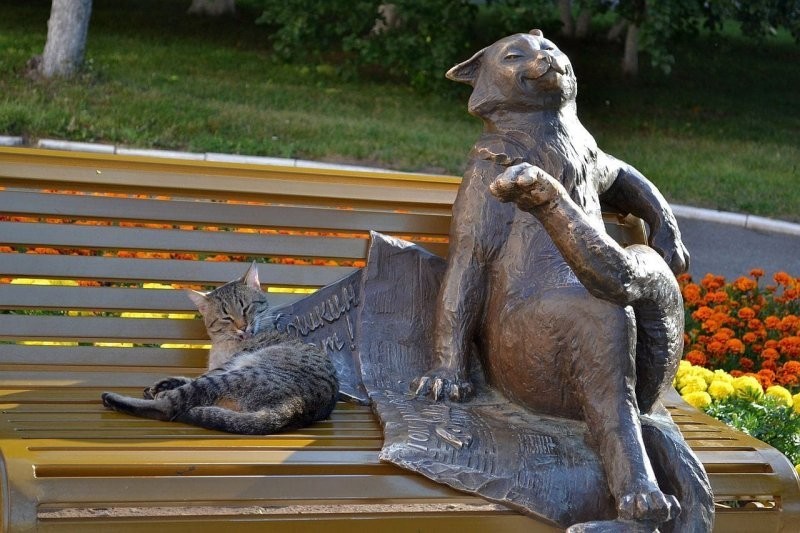 А иначе как можно объяснить столь умелое позирование пушистых моделей на фоне скульптур и памятников? Не каждому человеку удастся принять такую элегантную и изящную позу. Впрочем, некоторые модели не позировали специально, а просто забыли о времени и уснули в тихом местечке. Но фото от этого не перестали быть менее трогательными, милыми и душевными.