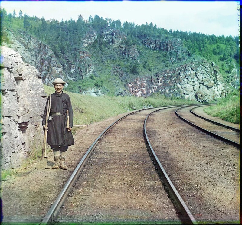 2. Железнодорожный оператор позирует на Транссибирской магистрали, Российская империя, 1910 год
