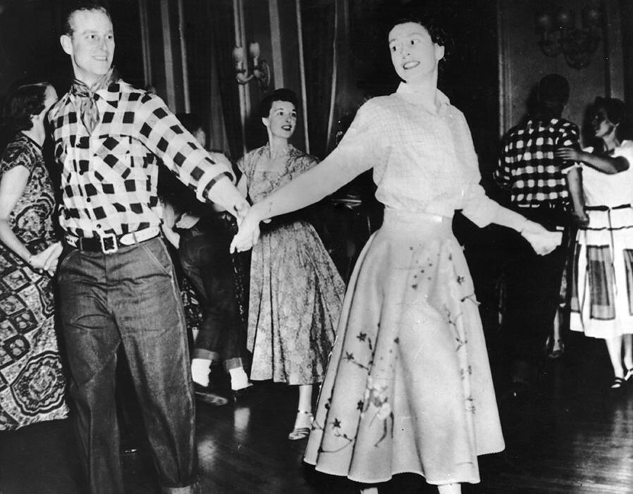 1. Принцесса Елизавета и принц Филипп танцуют под ритм кантри, Оттава, Канада, 1951 год