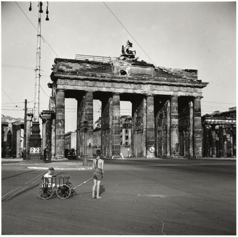 11. Мальчик с коляской у Бранденбургских ворот, Берлин, 1947 год