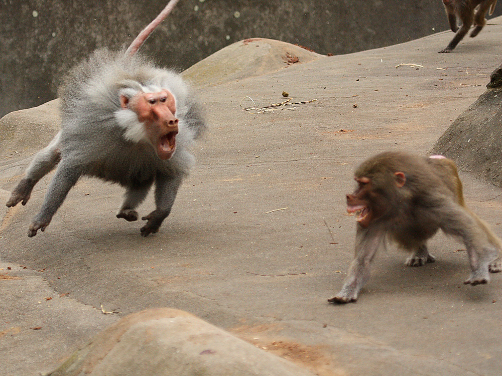 Когда несколько сотен приматов собираются вместе, ситуация может быстро превратиться в бардак. Чтобы это исправить, люди придумали такие штуки, как законы и мораль. А вот гамадрилы выбрали другой путь — мордобоя, насилия и строгой иерархии.