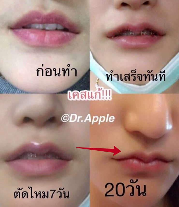 Тайцами очень нравятся более тонкие и изогнутые губы, но из-за строения челюстей многих девушек после такой операции губы просто перестают соприкасаться при закрытом рте. А когда такая девушка улыбается, губы стягиваются в тонкую ниточку, что выглядит довольно жутко, потому девушки перестают улыбаться.