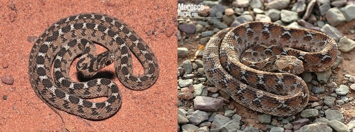 Вот например, яйцеед (слева) мимикрирует под ядовитую белобрюхую эфу.
