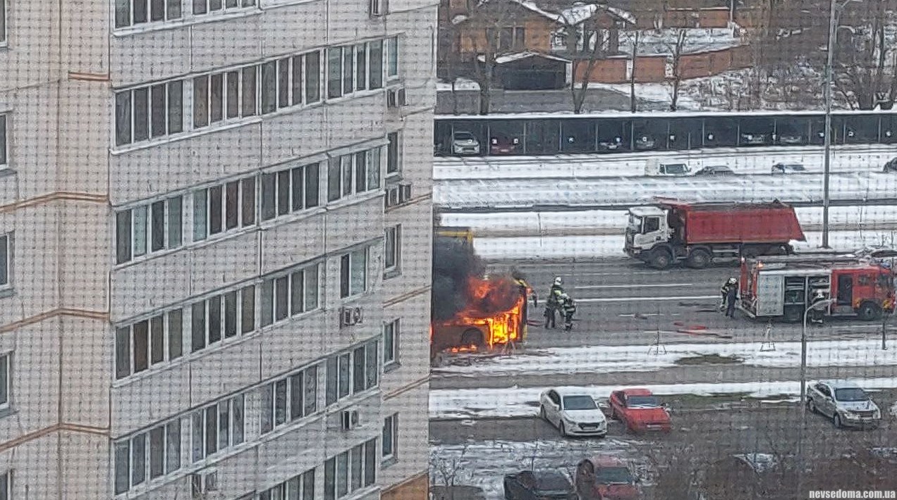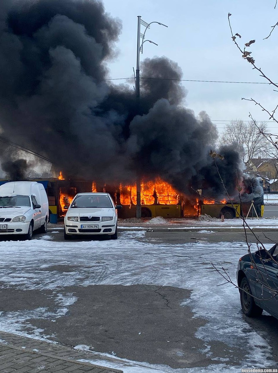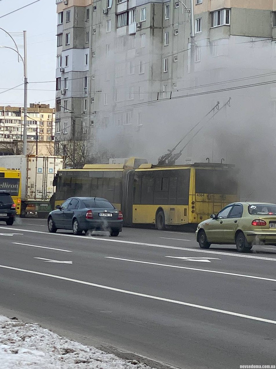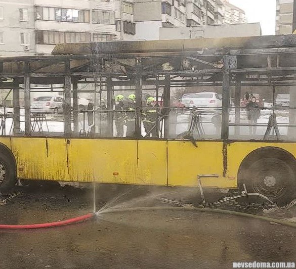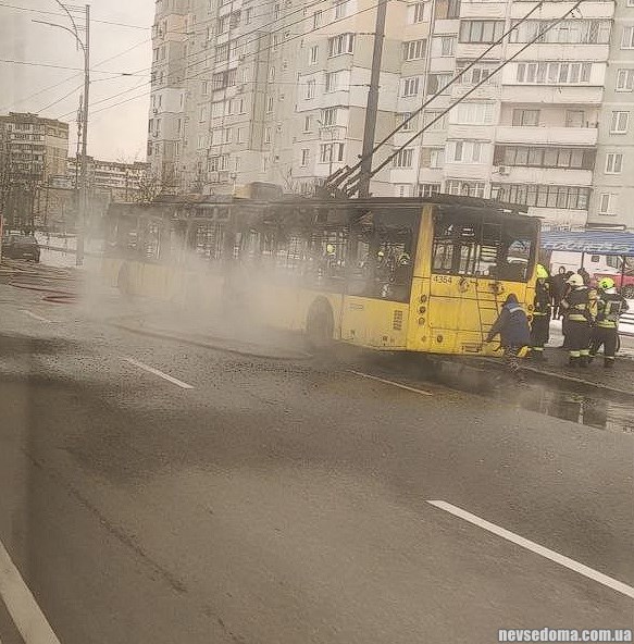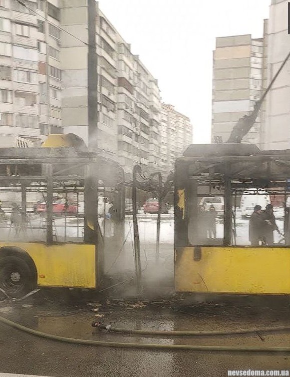 В Троещине полностью сгорел троллейбус, никто из пассажиров не пострадал
