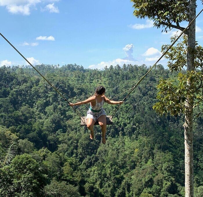 17. "Пока моя подруга делала фото на отдыхе в Индонезии, на фоне начал извергаться вулкан Синабунг"
