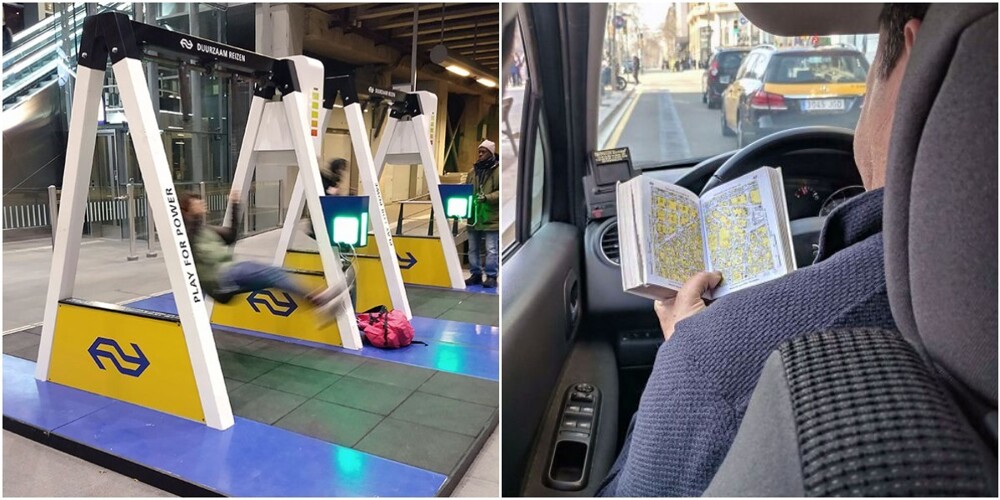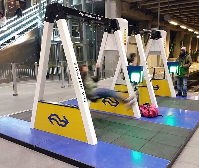 1. Качели на станции метро. Качаясь на них, вы вырабатываете энергию для зарядки телефона