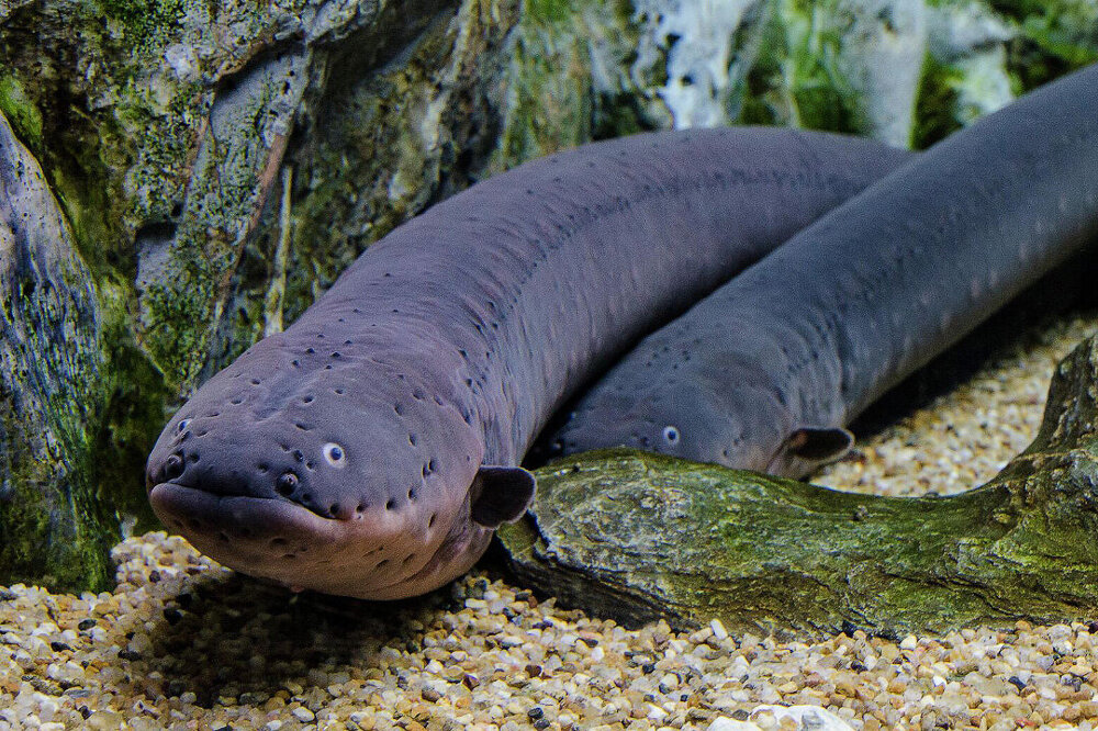 Итак, знакомимся с нашим сегодняшним гостем из Южной Америки – электрическим угрём. Строго говоря, это не вид рыб, а род (Electrophorus), состоящий из трёх видов. К тому же угрями они названы из-за внешнего сходства с настоящими угрями, а на деле являются роднёй рыбам-ножам.