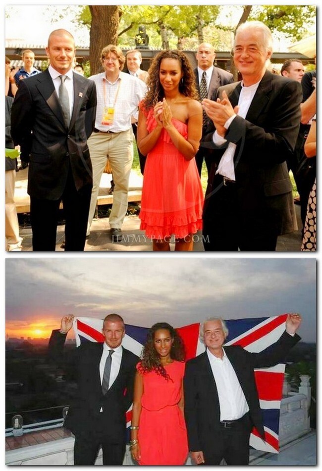 Дэвид Бекхэм, Леона Льюис и Джимми Пейдж на закрытии Олимпиады в 2008 году