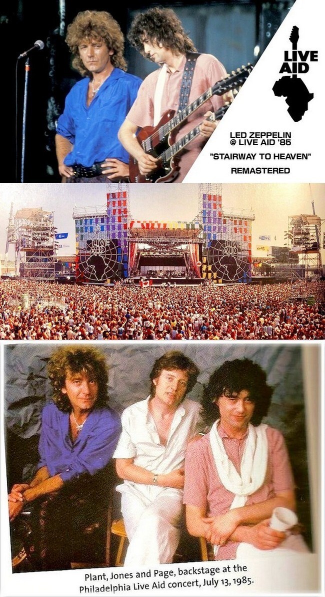 В июле 1985 года 3 участника LZ (Пейдж, Плант и Джонс) реформировали группу (пригласив к участию за барабанами Фила Коллинза (ех-Genesis) и Тони Томпсона (ех-The Power Station и Chic)) для выступления на Международном благотворительном фестивале «Live Aid», организованным музыкантами Бобом Гелдофом и Миджем Юром с целью сбора средств для пострадавших от голода 1984-85 гг. в Эфиопии. Однако, качество выступления музыкантов не удовлетворило, и они оказались единственными из участников мероприятия, попросившими не включать запись их сета в юбилейный DVD, выпущенный в честь 20-летия со дня концерта.