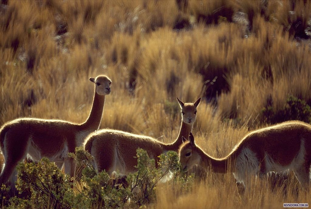 2. Викуньи обитают в высокогорных степях Южноамериканских Анд. Охота на этих копытных всегда была распространена из-за их мяса и шерсти, поэтому этот вид почти исчез, однако многие нашли защиту в заповеднике Перу Пампа Галерас. (Steve Raymer)