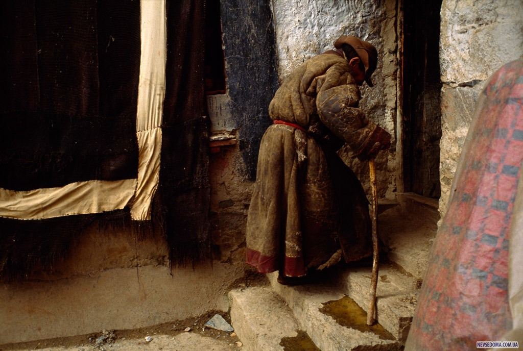 3. Пожилая монахиня поднимается по ступенькам в женском монастыре Тидрум в Тибете. Это отдаленное место привлекает паломников, желающих искупаться в горячих источниках, известных своими исцеляющими способностями. (Justin Guariglia)
