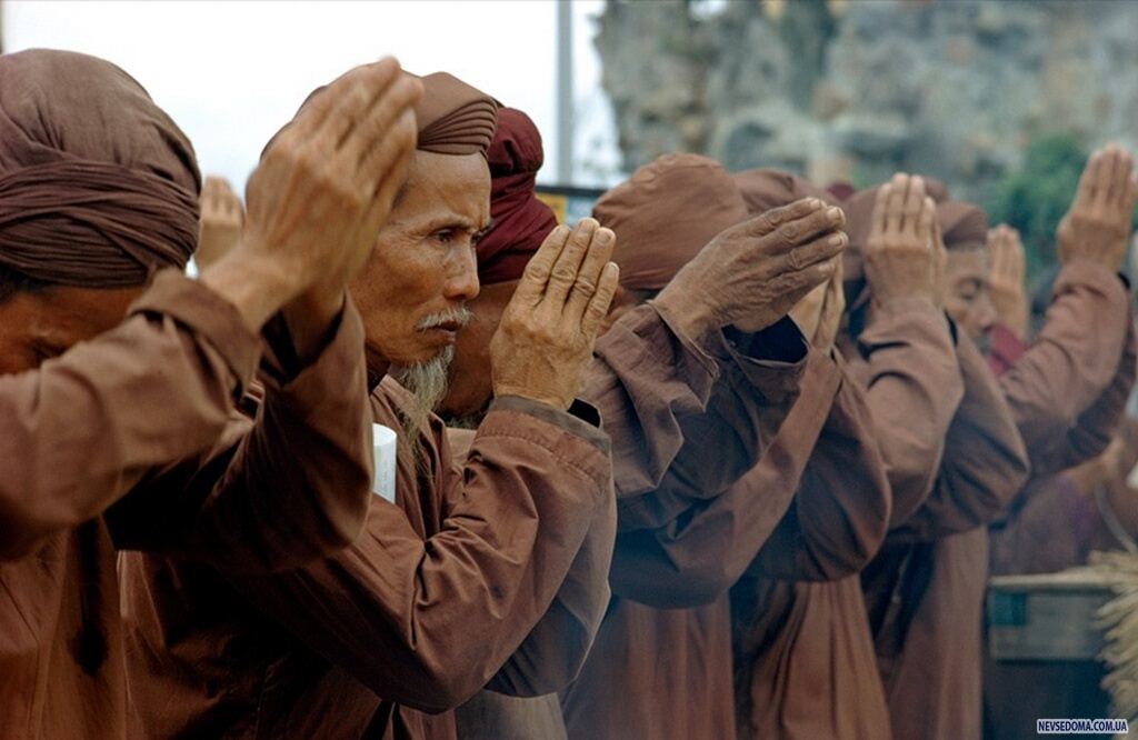 11. Одетые в коричневое, буддистские монахи молятся за мир во Вьетнаме. В 1950-ых, 60-ых и 7-ых годах война разделила вьетнамский народ. (W.E. Garrett)