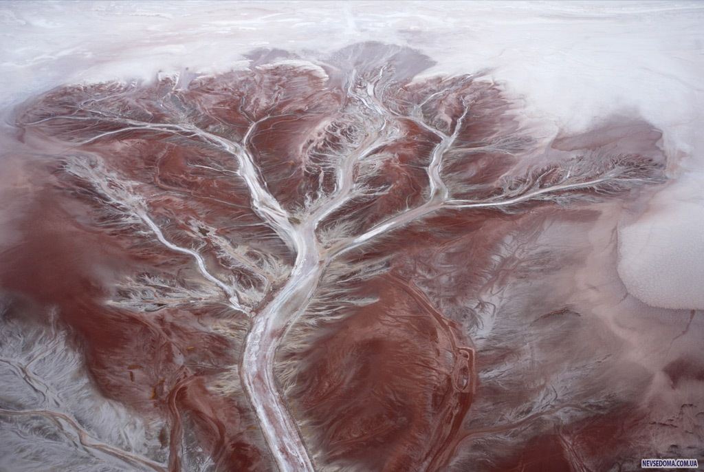 15. Вид с воздуха на узоры в Салар де Ууни – крупнейшем соленом озере в мире – похожи на огромное дерево. Обширная соленая равнина в Боливии была образована доисторическим озером. (Robert B. Haas)
